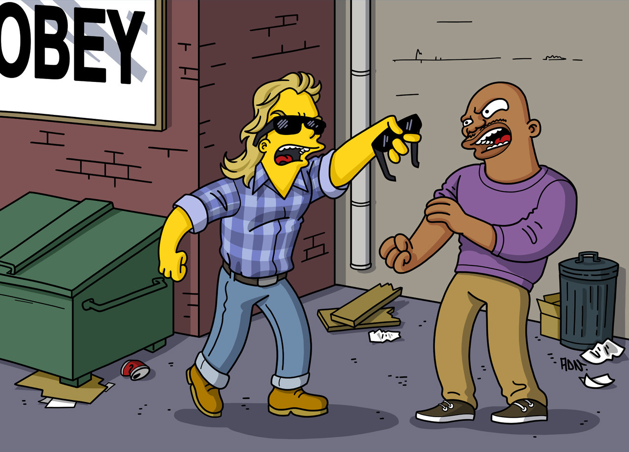 In a more extreme example, I thought of Rowdy Roddy Piper and Keith David’s epic battle in the alleyway from They Live, “PUT THE GLASSES ON!”