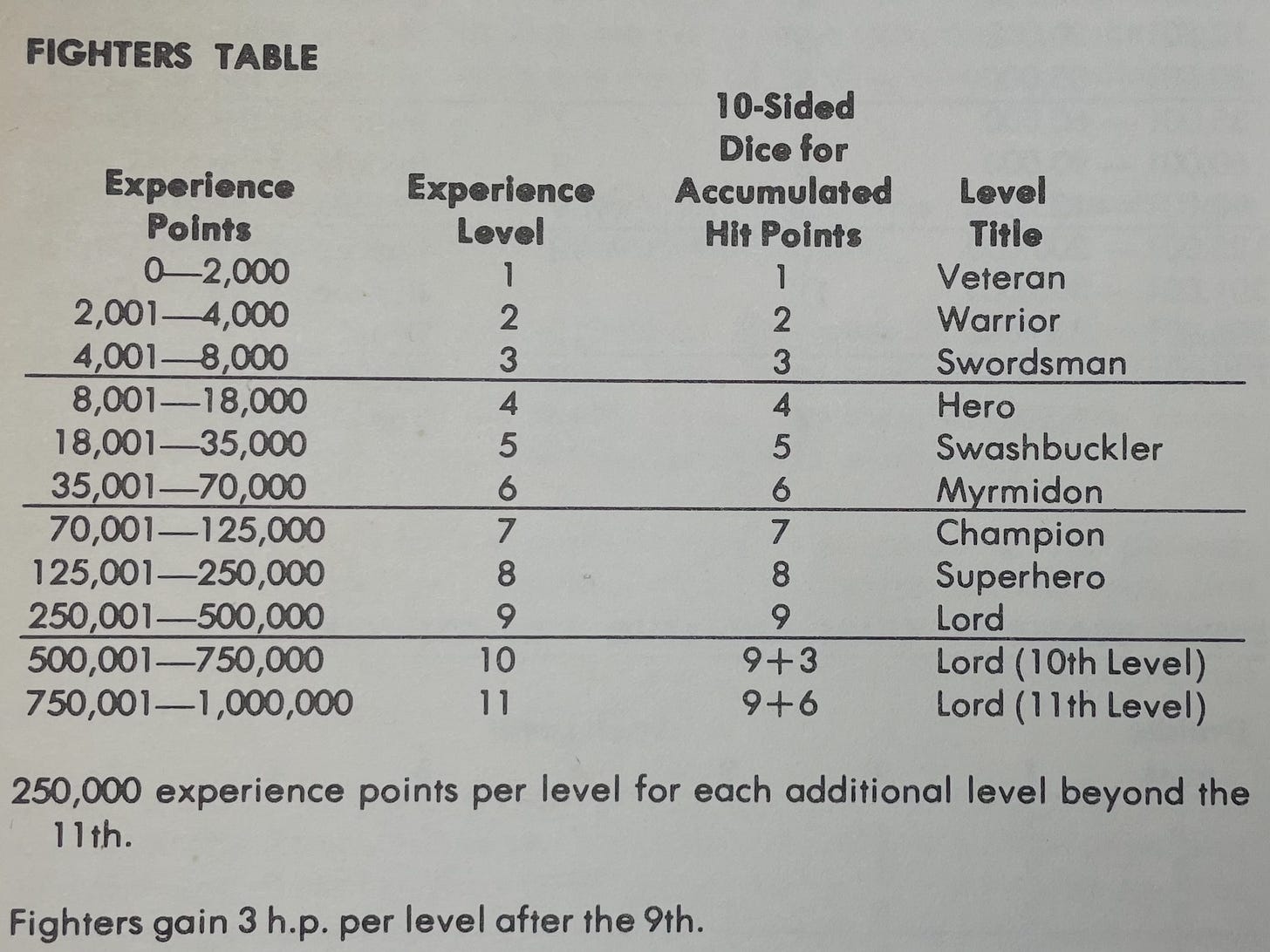 The book said I could start out as a Veteran and wind up as a Lord with stops at Hero, Swashbuckler and Champion. Sadly, my group of teenager friends did not care about the titles as much as I did and so they were just titles, names of levels rather than something your character could become.