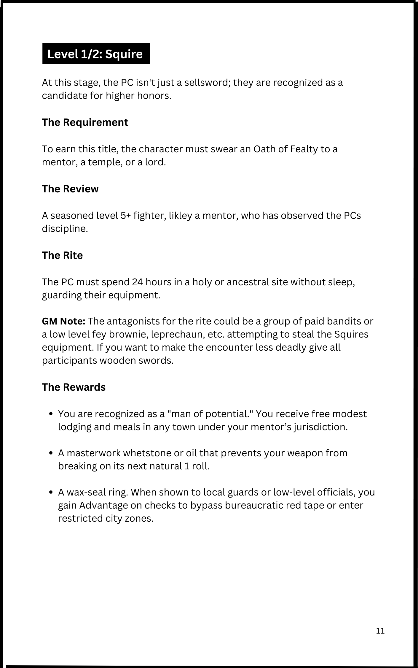 Now that I am older, I want to add some value to these titles, make these titles mean something in game and to the players and their PC’s. I want your players to be excited to level up beyond erasing one level on their character sheet and writing in another.